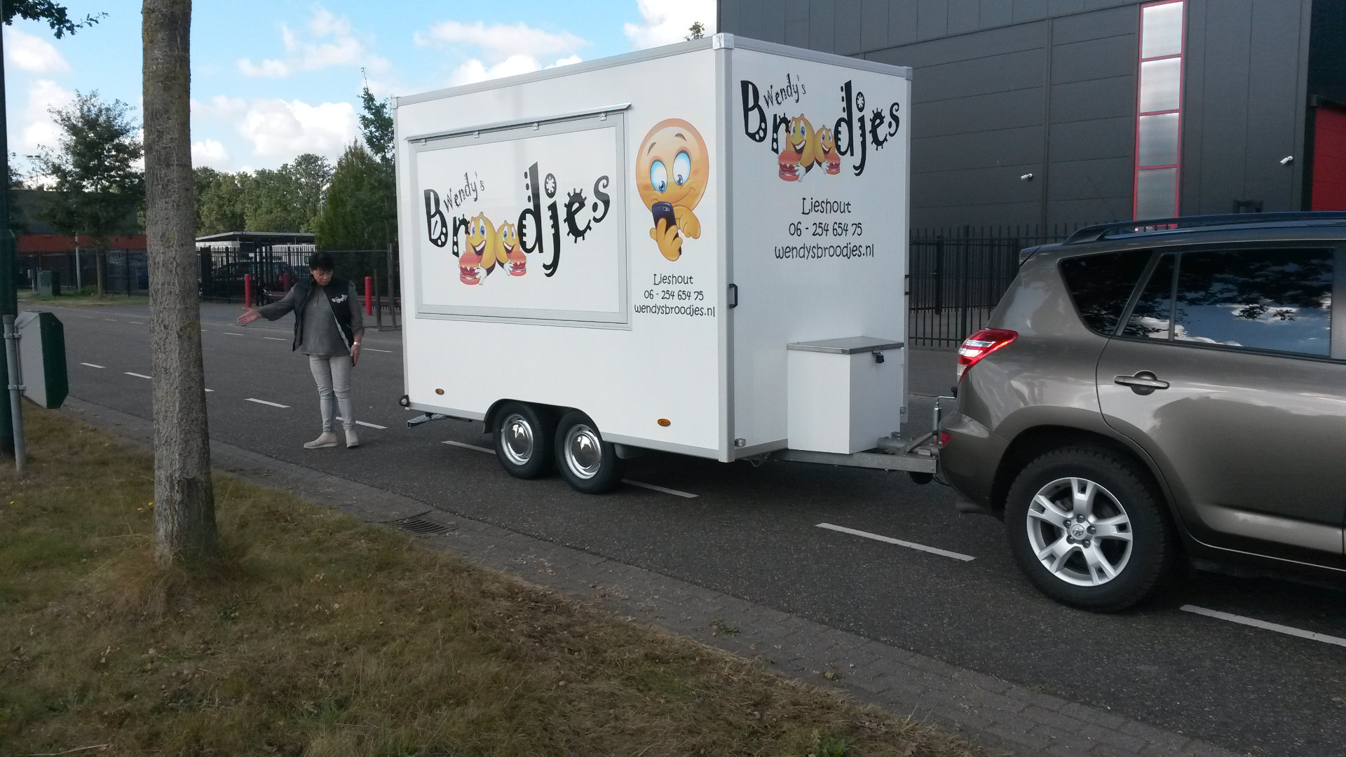 - Lengte 4.7 meter, Breedte 1.9 meter, hoogte 3,1 meter. Breedte serveerluik 2,4 meter.